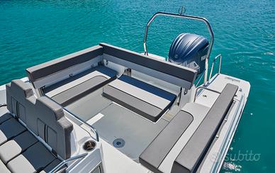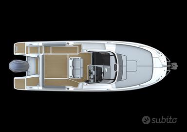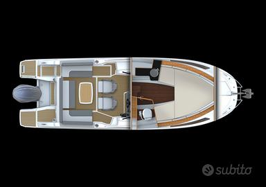 Ciò che sorprende di più a bordo del Cap Camarat 7.5 WA è il livello di comfort e vivibilità per una barca di 25 piedi. In pozzetto, una cucina esterna opzionale, con frigorifero, grill, lavello e, a scelta, vasca del vivo o fornello a gas, permette di intrattenersi all'aria aperta. Scendendo sottocoperta si trova un ampio salone convertibile in cuccetta doppia, con ampie finestre a scafo che inondano di luce naturale l'interno. Il bagno privato è accessibile da un vano separato. Questa barca giornaliera offre ogni motivo per prolungare le vostre vacanze in coppia, che si tratti di un weekend o di un periodo più lungo.