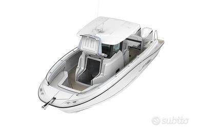 IN PACKAGE CON MOTORI MERCURY 2X200 V6 BIANCHI A PARTIRE DA ? 122.200,00 IVA E TRASPORTO ESCLUSI NEW MODEL!!! IL DAYBOAT PER LA FAMIGLIA. AD OGNI ONDA UN'ESPERIENZA UNICA. Il Cap Camarat 9.0 CC Serie2 rappresenta una visione moderna del piacere di stare in mare: un dayboat al tempo stesso ad elevate prestazioni, intuitivo e adatto alle famiglie, per sfruttare al meglio ogni momento, che si tratti di un'uscita sportiva, di un pomeriggio di relax o di una gita improvvisata. L'esperienza di navigazione al centro del tuo programma Il Cap Camarat 9.0 CC Serie2 è la barca per la famiglia per eccellenza, che unisce comfort e prestazioni. Grazie alla sua carena e al design slanciato, la navigazione sarà fluida qualunque siano le condizioni atmosferiche. La protezione del parabrezza e la ventilazione assicurano il massimo comfort a tutto l'equipaggio. La postazione di guida centrale, dotata di sedili per i copiloti, consentirà di condividere con più persone questa sensazione di sportività in mare. La notevole maneggevolezza, grazie al propulsore collegato al joystick, permetterà a tutti, anche ai principianti, di manovrare l'imbarcazione con reattività e precisione. Il quadro di comando a tutta la larghezza è dotato di strumenti di navigazione di ultima generazione che ti guideranno durante tutte le tue uscite giornaliere. Questo nuovo dayboat è divertente e ideale per navigare velocemente e confortevolmente. Una vita a bordo orientata verso l'esterno Ogni spazio del Cap Camarat 9.0 CC Serie2 è stato progettato per farti vivere speciali momenti di convivialità. A babordo, l'ampia terrazza, elemento fondamentale per un'imbarcazione di queste dimensioni, consente di vivere momenti di relax a stretto contatto con l'acqua. Largo alle nuotate e al dolce far niente! Valutiamo eventuale rientro di marinello brube laguna seca marine site bellingardo eolo allegra idea marine quicksilver sessa ranieri soverato honda voyager 19 open cabin mercury selva hond