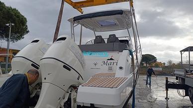 MOTORIZZAZIONE:Tipo Fuoribordo Modello SUZUKY Potenza 2x200 Anno 2020 Ore Motori 150 Lunghezza 8,60 Larghezza 2,98 Accessori principali: GPS - Elica di prua - Teak in pozzetto e plancette - Altoparlanti - Stereo Strumentazione elettronica di navigazione: Bussola - Comando motori elettronico - Computer di bordo - Display - Ecoscandaglio - GPS - Sedile Copilota Allestimento tecnico e di coperta: Allarme motore - Allarme sentina - Ancora - Autoclave - Batterie - Caricabatterie - Doccia esterna - Elica di prua - Flap elettrici - Hard top - Indicatori Flaps - Luci di cortesia - Pompa di sentina elettrica - Pompa di sentina manuale - Pozzetto Teak - Scaletta da bagno - Tavolo pozzetto - Tromba Dotazioni domestiche di bordo: Acqua Calda - Boiler - Impianto acque nere - Indicatore del serbatoio del carburante - Indicatore del Serbatoio dell'Acqua - Prese interne 12v - Prese interne 220v - WC marino elettrico Dotazioni di sicurezza: Dotazioni di sicurezza entro 6 miglia Intrattenimento: Altoparlanti - Radio AM/FM - Stereo Cucina ed elettrodomestici: Cucina - Fornello - Frigorifero esterno - Frigorifero interno Tappezzerie: Cuscineria completa - Cuscineria di poppa - Cuscineria di prua - Cuscineria Pozzetto - Materassi - Tendalino Commissioni di mediazione non incluse Prezzo IVA esposta Non si accettano permute ma contattaci per vendere la tua barca alle migliori condizioni Mostra numero