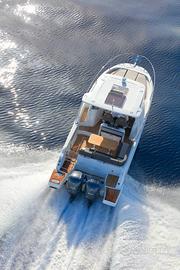 Dotato di uno scafo a V progettato da Michael Peters e di una doppia motorizzazione fino a 2 x 250 CV, il Cap Camarat 9.0 WA delizierà gli amanti del brivido e delle traversate rapide, con il vento tra i capelli, con velocità massime di oltre 40 nodi. Con linee allungate, un T-top, un parabrezza protettivo in vetro e ampie vetrate nello scafo... questa barca, ispirata ai Cap Camarat 10.5 WA e 12.5 WA, vanta uno stile elegante, raffinato e contemporaneo, ma anche sinonimo di sicurezza e divertimento per tutta la famiglia.