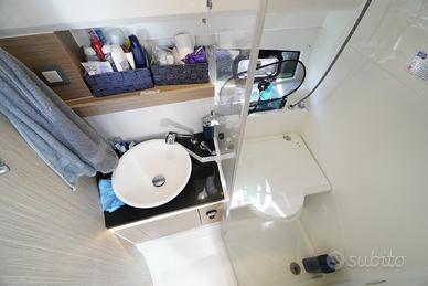 Contametri catena, Display, DSC vhf, Luci di navigazione, Corrimano, Elica di prua - bow thruster, Faro orientabile, Flap elettrici, Luci subacquee, Tavolo pozzetto, Tavolo Salone Abbattibile, Acqua Calda, Boiler, Impianto acque nere, Inverter, Serbatoio Acque Nere, WC marino elettrico, Radio AM/FM, Fornello, Frigorifero esterno, Frigorifero interno, Cuscineria completa, Tendalino.