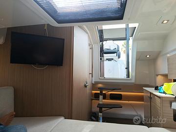 Contametri catena, Display, DSC vhf, Luci di navigazione, Corrimano, Elica di prua - bow thruster, Faro orientabile, Flap elettrici, Luci subacquee, Tavolo pozzetto, Tavolo Salone Abbattibile, Acqua Calda, Boiler, Impianto acque nere, Inverter, Serbatoio Acque Nere, WC marino elettrico, Radio AM/FM, Fornello, Frigorifero esterno, Frigorifero interno, Cuscineria completa, Tendalino.