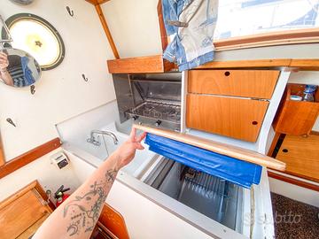 Vendiamo la nostra Sirah perché cambiamo Modello. È una barca a vela da crociera marina e affidabile, con interni spaziosi e luminosi grazie alle numerose finestre. Il layout intelligente la rende ideale sia per brevi uscite nel fine settimana che per viaggi più lunghi. La combinazione di costruzione solida, buone prestazioni a vela e dotazioni confortevoli la rende un classico molto apprezzato. Gli spazi interni sono ben sfruttati, con cuccette comode, vani pratici e un tavolo ribaltabile. Manutenzione annuale e prevenzione osmosi: Da tre anni, ogni anno manutenzione professionale con controllo sistematico, asciugatura e rivestimento dello scafo. Dati tecnici: * Jeanneau Folie Douce (Anno: 1978) * Lunghezza fuori tutto: 9,00 m * Larghezza: 3,00 m * Pescaggio: circa 1,50 m * Dislocamento: circa 2.800 kg * Materiale: vetroresina (GFK) * Carena: chiglia lunga con timone a barra * Armo: sloop a testa d’albero * Superficie velica: circa 44 m² * Altezza interna: circa 1,87 m * Cuccette: 2–4 * Posti letto: 4–5 * Timone: a barra Motore: * Motore entrobordo (installato nel 2019) * Nanni Industries 3.21 – 19,8 CV / 14,6 kW * Silenzioso, affidabile, a basso consumo * Serbatoio acqua: 100 L * Serbatoio gasolio: 50 L Dotazioni: * Collegamento alla corrente di terra con caricabatterie * Strumentazione (bussola, ecoscandaglio, log) * Scaletta bagno, parabordi, cime d’ormeggio * Randa e fiocco avvolgibile in buono stato * Lavello e fornello a gas a due fuochi * Frigorifero * WC separato con lavandino * Pompa di sentina elettrica * Doccia esterna * Due grandi gavoni esterni * Cuscineria rinnovata circa 4 anni fa Altri accessori: dotazioni di sicurezza, estintore, giubbotti salvagente * Impianto predisposto per pannelli solari Visibile allo ormeggio attuale: porto di Marina di Cecina Se necessario disponibile anche l’attuale posto barca. Contattaci sul WA: +39 340 3153221