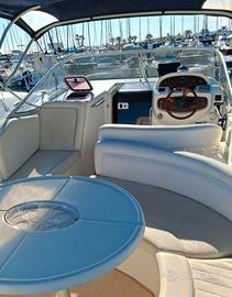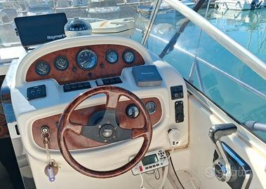 Jeanneau Leader 805 del 2006 Motore: Volvo V8 320 CV con 60 ore (5,7L, nuovo, garanzia valida fino a luglio 2026, fattura disponibile su richiesta) Lunghezza: 7,49m – Larghezza: 2,95m Cuscineria in condizioni nuove Moquette interna/esterna nuova Legno verniciato DOTAZIONI Doppia elica Elica di prua Flaps Ecoscandaglio/GPS/tracciatore Ray Marine nuovo VHF con licenza aggiornata Cime da porto con molle inox di alta qualità Passerella in aluminium Presa da banchina + adattatore per presa standard N. 2 batterie (meno di 2 anni) e caricabatterie Salpa ancora elettrico Bimini Materassi prendisole 2 posti a prua Doccetta di poppa Scaletta da bagno Tendino di copertura per lo svernamento Tendino per posto di pilotaggio Tendino camper al completo Dotazioni di sicurezza al completo – Estintori nuovi WC marino con doppio scarico (esterno o serbatorio «waste») Spazio doccia Frigorifero – Boiler – Cucina a gas Antenna TV – Radio – Doppia presa USB Boa da traino nuova con pompa, cavo di traino e bandiera Visibile al port di Saint Laurent du Var Per informazioni, contattare ROBERTO CARDEO al n. EBC YACHT Con noi puoi comprare o vendere la tua barca in modo semplice e affidabile. Offriamo servizi completi: trasporti marittimi, assicurazioni, perizie, finanziamenti e molto altro. Visita il nostro sito!