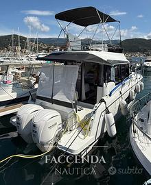 Merry Fisher 10,95 2024 full optional 2x300HP Yamaha. Barca in garanzia, Navigazione sicura e sportiva favorita dalla doppia motorizzazione fuoribordo e una carena a V. La Barca è molto accessoriata: elettronica doppia interna e sul Fly, elica di prua, doppio frigo, passerella idraulica, bimini sul Fly, prendisole a prua con schienali reclinabili e molto altro. Sistema di collegamento a smartphone tramite Seanapps.