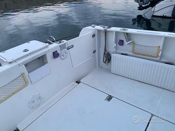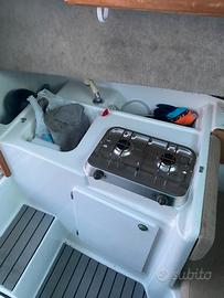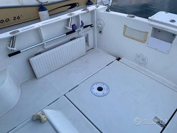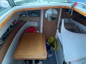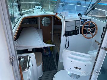 Splendido Jeanneau Merry Fisher 695, lunghezza: 6,99 m, lunghezza fuori tutto 8 m, larghezza: 2,73 m, pescaggio 0,75 m, serbatoio gasolio 130 l. Disposizione interni: cuccette laterali,cucina con fuochi a gas, bagno in locale separato.