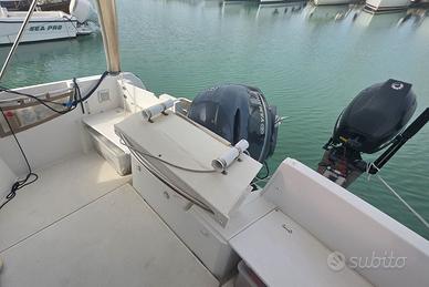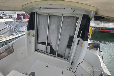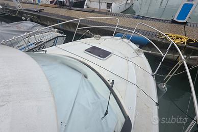 Categoria di nav.: C - Litoranea Stato conservazione: Eccellente Lunghezza: 7,55 m Larghezza: 2,78 m Immersione: 0,48 m Dislocamento: 1.965 Kg Disponibilità IMMEDIATA IVA Pagata Progettista: Centowski Consumo: 22 Imp. elettrico: 12V 220V Forma carena: Semiplanante Velocità (croc): 20 Kt Velocità (max): 30 Kt Serb. carburante: 280 L Serb. acqua: 100 L Yamaha 200 4 TEMPI (2015) Tipologie: Fuori Bordo 4-Tempi a Iniezione Trasmissione: Fuoribordo Ore moto: 661 1 x Dinette 1 x Matrimoniale a V di prua 1 x Toilette senza bidet Strumentazione elettronica di navigazione Angolo barra, Bussola, Contamiglia, Contaore, DSC vhf, Ecoscandaglio, GPS, Luci di navigazione, Pilota automatico, Plotter, Plotter con antenna GPS, Quadro comandi, Radio VHF, Strumenti di misura per motori. Allestimento tecnico e di coperta Allarme motore, Alternatore, Ancora, Autoclave, Batterie, Caricabatterie, Cavo corrente di banchina, Doccia esterna, Faro orientabile, Flap elettrici, Hard top, Luci di cortesia, Motore ausiliario, Parabordi, Pompa di sentina automatica, Pompa di sentina elettrica, Porta ingresso, Salpa Ancore Elettrico, Supporto motore fuoribordo, Tromba. Dotazioni domestiche di bordo Indicatore del serbatoio del carburante, Indicatore della pressione dell’olio nel motore, Indicatore della temperatura del motore, Pavimento interno in legno, Prese interne 12v, WC marino elettrico. Intrattenimento Altoparlanti, Digitale Terrestre, Impianto TV, Radio AM/FM, TV. Cucina ed elettrodomestici Cucina, Fornello, Frigorifero interno. Tappezzerie Copripozzetto, Cuscineria completa, Cuscineria di poppa, Cuscineria di prua, Cuscineria Pozzetto, Materassi, Oscuranti.
