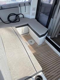 Ancora, Batterie, Caricabatterie, Doccia esterna, Flap elettrici (Lenco), Hard top (con tettuccio scorrevole e barre porta sup), Passerella (in teak pieghevole), Piattaforma (di prua con scaletta), Pompa di sentina elettrica, Pompa di sentina manuale, Porta ingresso, Porta laterale, Pozzetto Teak, Presa 220V banchina, Salpa Ancore Elettrico, Scaletta da bagno.