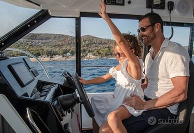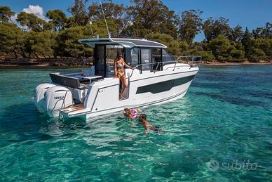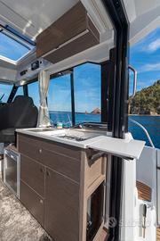 Questa nuova versione presenta una linea slanciata ispirata alle barche più grandi della gamma di nuova generazione. Le moderne finestrature dello scafo e la tuga dal design elegante si fondono in un profilo dinamico e sportivo. La nuova carena consente di navigare in piano a partire da 20 nodi, velocità questa facilmente raggiungibile grazie alla doppia motorizzazione 2×250 CV, in massima potenza, che garantisce comfort e manovrabilità.