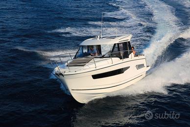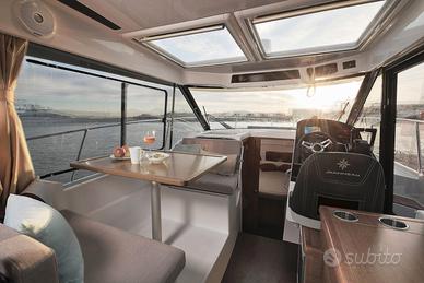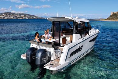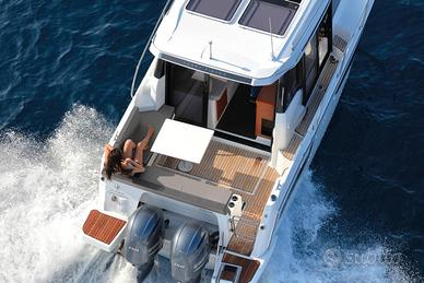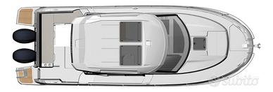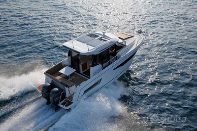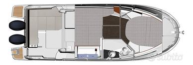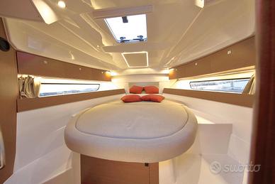 Questa nuova versione integra una linea allungata, ispirata ai modelli più grandi della nuova generazione. Le moderne finestrature a scafo e la tuga, dal design distintivo, si integrano perfettamente in una silhouette potente e sportiva. Il nuovo scafo consente la planata a partire da 20 nodi, velocità facilmente raggiungibile con i suoi due motori, 2 x 250 CV alla massima velocità, garantendo comfort e manovrabilità.