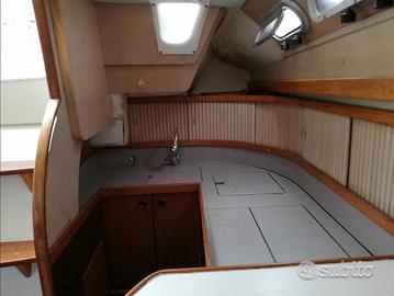 Lunghezza fuori tutto 9,98m larghezza 3,50m pescaggio 1,90m capacità acqua 250L capacità carburante 98L, 2 cabine + dinette con cucina numero trasportati 8, 2 bagni elettrici, boiler acqua calda con scambiatore, 1 batteria gel 100ah e 1 batteria 80 ah caricabatterie 25 a, tender, sistemi di autopilota e ecoscandaglio esterni disattivati sistemi interni Apelco FishFinder XCD250 e cartografo Apelco DXL 6300 Loran-C anni 90 , cucina a gas con bombolino estraibile, tv smart, radio stereo smart con sub woofer passivo, vhf Shipmate, dotazioni di sicurezza con zattera da revisionare per 8 passeggeri, tenuta meccanica linea d'asse, motore in ottime condizioni volvo penta 27 cv tagliando fatto giugno 2024, inverter 220 v 800w continui, impianto eolico e predisposizione pannelli solari su roll bar, verricello 1000w, tavolo nella dinette a scomparsa, legname in perfette condizioni, tappezzeria in perfette condizioni, carena con antivegetativo giugno 2024. Anno di costruzione 1990 vetroresina+Kevlar, pentolame e dotazioni cucina se richieste.