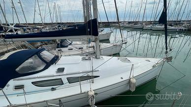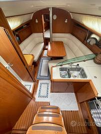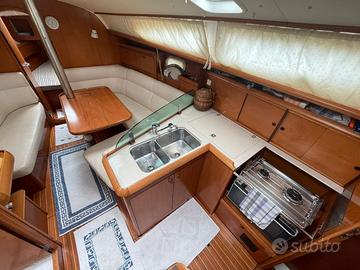 Progettista Marc Lombard, Scafo bianco vetroresina, 1 X 30Hp Yanmar, 3 Cabine, 1 Bagno, Pannelli solari, Sartiame Spiroidale 2005, Cappottina Paraspruzzi e copertura, Bimini-Top. Caratteristiche Tecniche Anno: 2005 Categoria: Crociera Cantiere: Jeanneau Nr Cabine: 3 Nr Bagni: 1 Motorizzazione: 1 X 30Hp Yanmar Lunghezza: 10,75 Larghezza: 3,49 Immersione (mt): 1,85 Colore scafo e coperta: Bianco Materiale scafo e coperta : Vetroresina Interni Nr Cabine: 3 Cabina armatoriale : Prua Nr bagni: 1 wc marino manuale Finiture interne : Legno Tappezzeria: jacquard Dinette : trasformabile Accessori cucina: forno , frigorifero Intratteninento: radio VHF, impianto HI-FI altoparlanti Motori Nr : 1 Marca motore : Yanmar 30 Hp Alimentazione: diesel Ore di moto: 1600 Nr batterie: 3 Anno batterie: 2024 Trasmissione: asse Nr pale: 2 fisse Serbatoio acqua: 310 lt Serbatoio diesel: 130 lt Impianti e strumentazione Impianti: 12V, Boiler 220, Boiler motore, Salpa ancore di prua, Pannelli solari 2 X 100 W. Strumentazione: Ecoscandaglio, Log, Stazione vento(accidentata/gabbiano), Bussola, Display multifunzione. Marca elettronica : Raymarine Numero GPS: 1 Tipo GPS: Colori con cartografia da 7 Pollici Posizione GPS: interno Tipo autopilota: sulla ruota Coperta e scafo Antivegetativa: 2023 Materiale prese a mare : bronzo 2005 Materiale deriva: ghisa Timoneria: esterna/acciaio Coperture: Spray Hood e copertura, Bimini-Top, Cuscineria esterna, Copertura consolle Ancore:1 X Bruce con 50mt catena Diam. 12 mm, 1 X Danforth e catena di rispetto. Accessori: Passerella in alluminio, gruetta per fuoribordo Valdità zattera (> 12 miglia): 01/2022 Vele Vele: Randa Dacron 2005, Genoa Dacron 2005 Accessori vele: copriranda easy bag 2026 Tipologia randa: steccata Tipologia avvolgifiocco: manuale Tipologia Winch: manuali Sartiame Spiroidale 2005
