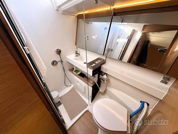 NOTE SUL PREZZO IVA Pagata DATI PRINCIPALI Cantiere: Jeanneau Modello: SUN ODYSSEY 440 Anno Costruzione: 2018 Lunghezza: 12,64 m Condizione: usato Stato conservativo: ottimo Tipologia: Crociera/Regata Codice: 880156 Jeanneau Sun Odyssey 440 PERFORMANCE - 2018 ; Vela vera, allestimento armatoriale, condizioni eccellenti ; Un Sun Odyssey 440 Performance non è un semplice cruiser: è una barca pensata per chi ama navigare davvero, senza rinunciare a comfort, sicurezza e qualità costruttiva Jeanneau. ; Questa unità del 2018, in versione Performance reale (albero maggiorato, vele dedicate, assetto profondo), rappresenta una delle configurazioni più complete e desiderabili oggi sul mercato. - Motorizzazione e impianti: Motore: Yanmar 4JH57 - 57 HP ; Ore motore: ca. 1.250 h ; Inverter Dometic 2,3 kW ; Pannelli solari Solbian (220 W totali) ; Riscaldamento diesel ad aria ; Elica di prua retrattile ; Plancetta di poppa elettrica con telecomando ; Autonomia e indipendenza ideali per crociere lunghe e navigazione senza compromessi. - Elettronica (Full Raymarine - Pack Ocean) : 2 Plotter touchscreen Raymarine eS97 Wi-Fi ; Radar Quantum ; Pilota automatico p70s con ACU400 + telecomando ; AIS ricetrasmettitore ; VHF doppio ; Stazione vento, log, eco, GPS, contametri catena ; Tutto già installato, integrato e pronto. - Interni - Allestimento Preference : Layout 3 cabine / 2 bagni ; WC elettrico ad acqua dolce (prua) ; Dinette ampia e luminosa ; Finiture di alto livello ; Illuminazione LED indiretta ; Cucina completa con forno, frigorifero, microonde ; Tappezzeria Ambiance Weiss ; Interni eleganti, moderni e pensati per una vera vita a bordo. - Coperta e comfort esterni : Pozzetto in teak ; Tavolo pozzetto apribile con alette ; Winch elettrico ; Doppia timoneria ; Passerella ; Doccia esterna - ALTRI OPTIONAL COMFORT / INTERNI : 2° comando verricello e contacatena ; sacche porta drizze in pozzetto ; foro "luxe" con grill ; Fondo dello scompartimen