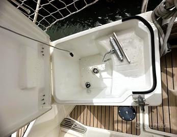 Elettronica Raymarine completa: doppio plotter da 9", autopilota, stazione vento, log, ecoscandaglio, VHF DSC, GPS ; Elica di prua Side Power (bow thruster) ; Pozzetto in teak con piattaforma abbattibile ; Winch elettrico + 2 manuali ; Salpa ancora elettrico con catena da 70 m Ø10 mm ; Autoclave, boiler, inverter, prese 12/220V ; Tender e zattera di salvataggio ; Impianto audio Bose, radio/stereo AM/F