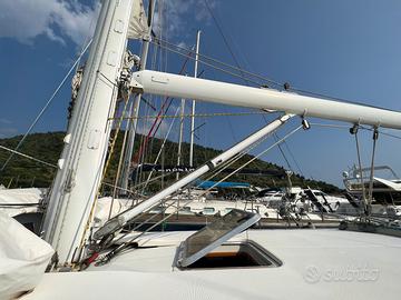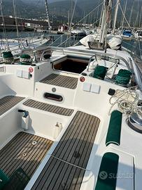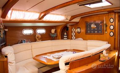 Imbarcazione in kevlar ottime condizioni, ponte teak, armo cutter, tormentina amovibile, 2 genoa dacron e composito ,tormentina dacron, randa avvolgibile, steccata One Sail , gennaker e calza,7 winches, manovella elettrica cuscineria capottina e bimini motore centrale Yanmar 75HP,linea d'asse ,elica tre pale abbattibili, elettronica completa Autohelm Raymarine,3 cabine finemente arredate, armatoriale a poppa, due bagni, interni in ciliegio, dinette in alcantara tavolo abbattibile,ampia cala vela,generatore 4 KW.