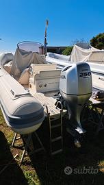 Gommone Joker Boat clubman 24 scafo del 2007 ma totalmente refittato nel 2020,rifatti i tubolari in Ice white carbon oennel e flipo ORCA.,cuscineria e Gps/Eco Garmin collegato al.motore in nemea. Motore Honda 250 con 500 ore di moto manetta meccanica in ottime condizioni.