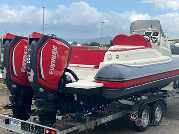 Vendo per passaggio a imbarcazione superiore, fantastico gommone JOKER BOAT 28 come nuovo. Costruzione 2017 . Prestazioni eccezionali mezzo pazzesco sia in termini di velocità che in tenuta del mare, carena insuperabile! Lunghezza 8 m , larghezza 3.20 m , carrellabile, omologazione categoria B, serbatoio acqua dolce 100 L, serbatoio carburante 400 L, serbatoio acqua nere 35 L. Visibile presso cantiere previo appuntamento. Full optional: - colore bianco/rosso con tubolari grigio carbon, int. bianco - Cuscineria completa rossa - Coppia pazzesca di motori Evinrude G2 300 HP rossi in garanzia fino al 2027 sempre tagliandati da centro autorizzato Evinrude, ad oggi hanno 254 ore di moto .... praticamente in rodaggio. Tendalino di colore rosso - Verricello elettrico - scaletta di poppa - Gps Garmin - VHF Garmin - Impianto stereo con stereo Jl + JL 6 casse + 2 amplificatori + Subwoofer + illuminate a led - Frigo - lavabo - Copri consolle - Bussola - Doccia - Sentina - Wc elettrico - 3 batterie - Luci cortesia led + luci consolle + luci marine - Caricabatterie + presa in banchina . Prezzo leggermente trattabile. Mi puoi contattare al 334 3054688 William
