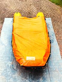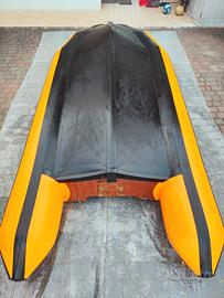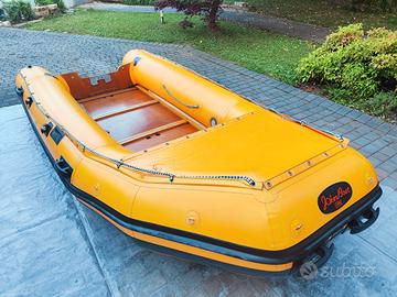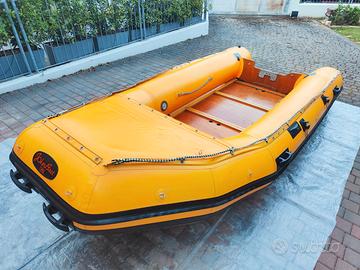In perfette condizioni vendo gommone in neoprene Joker Boat 430. Lunghezza 4 metri e 30 cm. Ha paramezzale e paiolato il legno marino completamete smontabili, ci sta tutto dentro il bagagliaio di una macchina familiare e si monta e smonta in max 20 minuti E' in tessuto neoprene, materiale dalla durata quasi eterna che mantiene le sue caratteristiche e morbidezza anche dopo moltissimi anni, non come i gommoni in PVC che dopo solo 5/7 anni diventano rigidi e si scollano tutti ed è impossibile ripararli. Può montare motore fino a 55 cv. e ha portata per 7 persone. Ha ottime doti di navigabilità anche con il mare molto formato grazie al paramezzale il legno che lo rende molto rigido e preciso in navigazione. Garantisco perfetta tenuta della pressione e assenza di screpolature. Ha le valvole nuove e come accessori la pompa, i remi ed il telo originale per coprirlo integralmente. Vendo causa inutilizzo. prezzo euro 1310. Se interessa eventualmente vendo a parte tiranteria e guida sia a barra che con il volante e manetta per accelleratore, il tutto si puo montare sopra il gommone. prezzo da concordare a parte