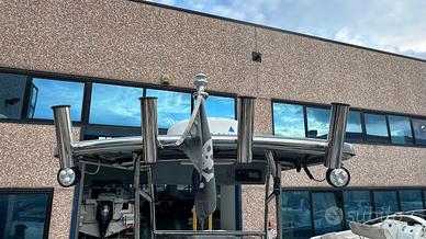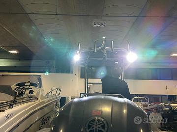 Hard Top - Pompa lavaggio calpestio - Predisposizione per pesca notturna - Luci sommerse - Radar Garmin - Strumento Combo Garmin 12" touchscreen GPSMAP 8600/Cartografia/Ecoscandaglio/Dati motore in tempo reale - VHF Fusion - Impianto stereo con 2 casse - Timoneria idraulica - Presa elettrica distributore pastura - doccia - Luci di via - imponente barra luce anteriore come da foto - faretti posteriori per pesca notturna - 8 portacanna inox - 2 portacanna da altura inox - 2 portacanna sui tubolari - seduta di guida inclinabile - vasca del vivo - lavello di poppa con rubinetto - strumento contagiri - contamiglia - pressione olio - trim - Serbatoio carburante 135 Litri