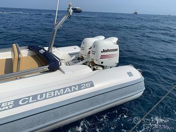 Vendo Joker Boat Clubman 26 per passaggio a categoria superiore. In ottime condizioni. Anno costruzione 2005, varato nel 2006. Doppia motorizzazione 4 TEMPI Johnson 140 con 1000 ore circa, sempre tagliandati da meccanici Suzuki. Accessori: Bussola Ancora in acciaio con modifica a tappo Seconda ancora di kg 6 + catena e cima N 2 batterie anno 2023 con annessi stacca batteria Autoclave con serbatoio da 120 l acqua + doccetta N 2 pompe di sentina (poppa e prua) Verricello elettrico 2024 Scaletta da bagno Impianto stereo 2024 con 4 casse Cuscineria completa Tendalino parasole in acciaio (originale) N 2 serbatoi acciaio inox per benzina anno 2022 GPS chart 155c Ecoscandaglio- Garmin VHF Marine Prolunga prendisole di prua + cuscino Cuffiotto pilotina Sono il terzo proprietario ed è uno dei gommoni performanti della categoria. Naviga favolosamente, consumi irrisori, bassissimi con eccellenti prestazioni. Prezzo EURO 29.000 NON TRATTABILE. NO PERDITEMPO Telefono +39 3924798927