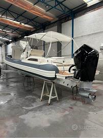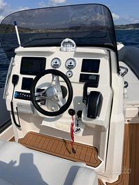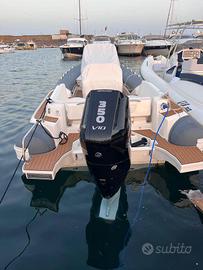 Caratteristiche Barca Anno di Costruzione: 2023 - Costruttore: JOKERBOAT -Modello: CLUBMAN 28 Lunghezza scafo: m. 8,50 Larghezza massima: m. 3,24 - Immersione: m 0,60 - Motori N°: anno 2023 - Marca: MERCURY - Modello: VERADO V 10 - Trasmissione: Fuoribordo - Hp: 1 x 350 hp. - Ore moto: 100 circa (Mai CHARTER) - Carb. Lt / Fuel: 400 - Acqua Lt: 120 - Vel. Croc. / Cruising speed: 24 - Vel. Max / Full Speed: 38 Accessori / Accessorries: Ecoscandaglio (integrato), GPS (10"Garmin), Pilota automatico, Radio VHF, Allarme motore, Auto Dynamic Trim Interceptor, Autoclave, 2 Batterie, Caricabatterie, Doccia esterna, Luci di cortesia, Luci subacquee, Pompa di sentina automatica, Pompa di sentina elettrica, Pompa di sentina manuale, Pozzetto Teak (Flexitek), Presa 220V banchina, Salpa Ancore Elettrico con doppio comando, Scaletta da bagno, Tavolo, Boiler, Prese interne 220v, WC marino elettrico, Dotazioni di sicurezza entro 6 miglia, Altoparlanti, Stereo, Cucina e Frigorifero esterno, Cuscineria di poppa, Cuscineria di prua, Telo copriconsolle, Tendalino, ecc…... Note Finali GOMMONE BEN TENUTO E RIMESSATO AL COPERTO Note: I dati inseriti nella presente scheda sono corretti ma non garantiti e sono forniti dal proprietario, in nessun modo ne siamo responsabili. Unità disponibile salvo il venduto. Le foto possono non riferirsi all'unità sopra descritta. SI VALUTANO EVENTUALI PERMUTE SPESE DI AGENZIA A PARTE RICHIESTA Euro 115.000 mila MOLTO POCO TRATTABILI PREZZO GIA’ RIBASSATO