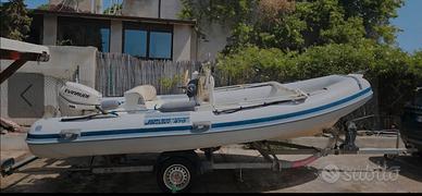 Vendesi bellissimo e inimitabile jokerboat 4.70 in buonissime condizioni accessoriato con motore evinrude 40-60 e-teac e carrello satellite modello senza freno. Il tutto unico proprietario. Si vende per inutilizzo e passaggio a altra categoria. Ultimo tagliando completo di tutto eseguito nel 2023, ma il motore ha regolarmente girato con acqua dolce più volte l'anno non avendolo più utilizzato a mare. Ore di moto più di 900 con la maggior parte eseguite al minimo per traina. Perfetto in tutto. Doppia batteria in contenitore di compensato marino. Serbatoio inox benzina in consolle con accesso diretto pompa carburante, cosi come il serbatoio (in materiale morbido) per l'acqua dolce e doccetta in specchio di poppa. Pompa di sentina acqua salata. Portacanne fissi e mobili e ecoscandaglio garmin striker 5. Carrello comprato nuovo pochi anni fa perfetto senza segni di ruggine ma necessita di revisione obbligatoria per la circolazione (ai tempi dell'acquisto non era necessario). Tendalino parasole perfettamente funzionante. Completa un telo molto protettivo che riveste perfettamente tutto il gommone estate/inverno e seppur usato e riparato svolge perfettamente la sua funzione