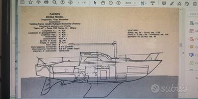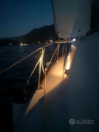 Cabinato a Vela 7,5 m (24 piedi) con Motore entrobordo BMW 6 Hp (7 CV) diesel, fuoribordo 9CV Evinrude 2 tempi gambo lungo, 6 posti letto, cucina a gas 2 fuochi, lavello, WC nautico, armadietti in cabina, gavoni dentro e fuori, tavolo da carteggio, con luce a stelo, luci LED sotto coperta, luci di Via ed in testa d'albero con lampadine standard a 12V. Batteria 12V per avviamento motore e servizi interni alla barca. Pannello fotovoltaico flessibile e caricatore energia solare. Radio con amplificatore blue-tooth, strumentazione di bordo e orologio.