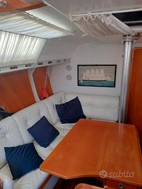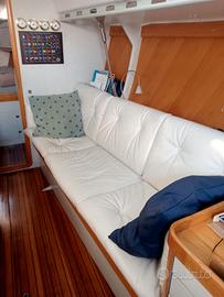 Progetto Judel Vrolijk, lunghezza ft 12,50 mt, baglio 3,78, pescaggio 2,40 mt, anno 1991, barca performante e veloce, versione 2 ampie cabine matrimoniali, 1 bagno con wc elettrico, albero a 3 ordini di crocette, armo frazionato, sartie in tondino, set di vele in ottime condizioni, completa di riscaldamento vebasto, illuminazione a led, motore 30 CV Yanmar marine SD, elica in bronzo a 3 pale orientabili, GPS, radar, sonar, autopilota, tender con motore da 4 CV, dispositivi di sicurezza e tanto altro. Attualmente su invaso, varo verso fine mese, completa di antivegetativa. Viene venduta pronta per la navigazione. Bandiera Slovena. Possibilità di subentro posto barca. Visibile a Porto Levante. Vendo per poco utilizzo. Solo interessati.
