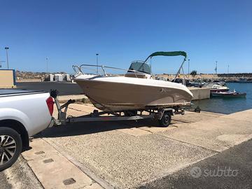 Vendo Kamarina 505, scavo e motore 2014, motore mercury pro 40/70 circa 300 ore di navigazione. Tenuta benissimo,portata in acqua solo 2 mesi l'anno. Tendalino blu con prolungo fino al prendisole in acciaio, doccetta, tavolino smontabile, 2 batterie, stereo Bluetooth con due casse, pompa sendina, scaletta acciaio inox.
