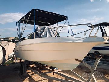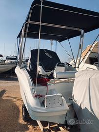 Kamarina 555, motore Suzuki 115 del luglio 2023 con circa 26 0re,con tagliandi Officia Suzuki,serbatoio carburante interno di 60litri,doccia,Eco/GPS Umminbird elix 10 con sonda da 800 Watt,Tendalino come da foto con Roll Bar,carrello non omologato.
