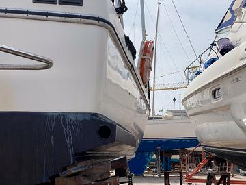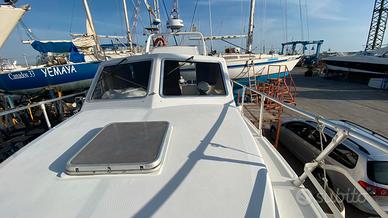 Vendo splendida Kappamarine cruisemaster del 1980 di cui sono il secondo proprietario, lunghezza ft 8,40 larghezza 2,90 pescaggio 1,2 mt con 5 tonnellate di stazza netta, motorizzata con due motori aifo aspirati ( zero problemi) in linea d'asse da 132 cv ciascuno, velocità di crociera di 12/14 nodi