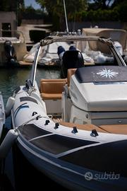 --Gps Raymarine AXIOM+ RV , vhf Ray 53 ray 53 con gps integrato, dotazioni di bordo entro 12 mg, 4 parabordi, anulare, tavolo , cappottina per navigazione e prolunga per camper, copriconsole e copri sedile, console regolabile elettronicamente e vetro antivento regolabile, ancora elettrica, radio Fm e Bluetooth con 2 casse, luci di cortesia e di navigazione notturna, doccia, serbatoio acqua 80l, serbatoio benzina principale 250l, serbatoio secondario 150l, 2 batterie con carica batteria e relativo cavo a terra, mezzo marinaio, cucina e lavabo, passerella pieghevole con tendibene, 2 portacanne, scaletta di poppa, motore mercury F 300 XL Verado anno 2010 ore moto circa 550 ( sempre tagliandato ), in questa stagione effettuati i seguenti lavori