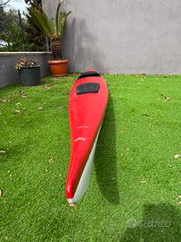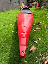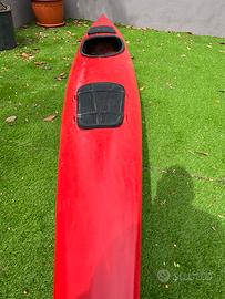 Kayak in vetroresina, recentemente restaurato, ottimo stato, lunghezza 5 metri, due ampi Gavino. In omaggio giubbino di sicurezza, pagata e carrellino
