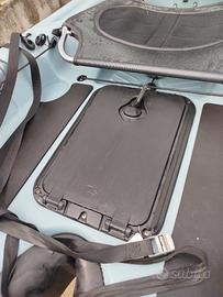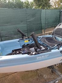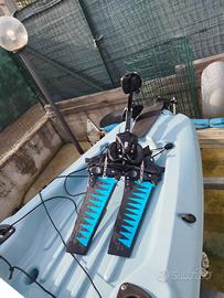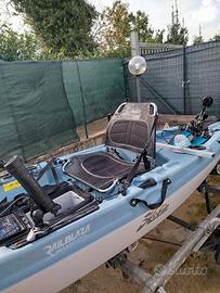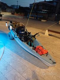 non ha bisogno di presentazioni,4 porta canne,2 vani con chiusura stagna,remi in alluminio,seduta,carrello x trasporto su sabbia, propulsione a pedali .. quando non lo uso è tenuto al coperto... poco trattabile
