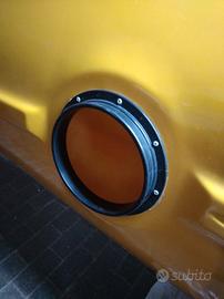 Kayak monoposto in resina Produzione Artfiber Italia (Udine) colore giallo e bianco completa di pagaia in legno - timone oltre regalo n. 4 ginghia di fissaggio per trasporto