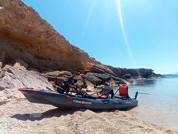 KAYAK mare TRIKEN 405 2.0 Big Mama per divertenti escursioni e per la pesca, dotato di doppio sedile, porta canne, ruotini da sabbia ed eventuale staffa per motore elettrico. Prezzo poco trattabile.
