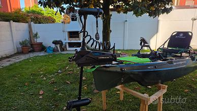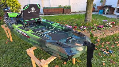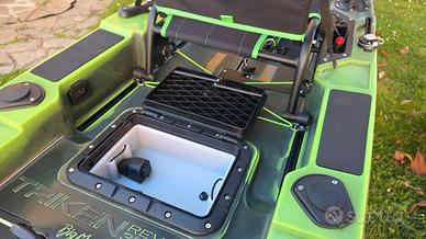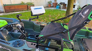 Vendo bellissimo Kayak professionale per pescare in edizione limitata Big Mama Triken 380 unico pezzo esistente con colore Military Camouflage. Il kayak ha un mese di vita. Possiede uno scafo trimarano incredibilmente stabile (io peso 100 Kg e ci ho pescato costantemente in piedi) ed ha una portata pazzesca di 240 Kg (certificati da ente navale). Il sistema di propulsione a pedali è un gioiellino di ingegnerizzazione, è molto veloce e richiede pochissimo sforzo. Essendo stato pensato per lunghe sessioni di pesca, questo kayak è dotato anche di un motore elettrico Haswing Cayman B 55Lb GPS: motore wireless che si guida con un telecomando (e gestibile da cellulare), con autopilota, GPS, ancora automatica etc… Con la sua batteria al LiFe da 100Ah ci ho girato e pescato in maniera continuativa per 7 ore REALI (un vero gioiello!!!). Completa la dotazione pesca un ecoscandaglio Lowrance 9 pollici Elite con trasduttore 3-1tra i più precisi ed affidabili del mercato. Il trasduttore dell’ecoscandaglio è posto sotto il kayak su un sistema sali-scendi azionabile dalla seduta. Per finire, sul kayak è presente un vano con 2 prese usb per ricaricare smartphone, tablet, go pro etc...). Insomma, avrete capito che non si tratta del solito kayak da pesca ma di un prodotto professionale molto tecnico. Io ho pagato il tutto 6300 euro e lo metto in vendita a 4300 euro (poco trattabili) con anche il suo carrellino. Il kayak verrà venduto con i suoi documenti di autenticità e le certificazioni. Essendo nuovo avrete anche i due anni di garanzia (sia sul kayak che sul motore). Per qualsiasi altra informazione e/o ulteriori foto scrivetemi e vi risponderò nel più breve tempo possibile.