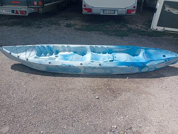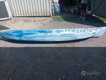 Kayak SIT-ON-TOP biposto + pagaie nuovo (mai usato) CARATTERISTICHE - LUNGHEZZA: 385 cm - LARGHEZZA: 83 cm - ALTEZZA: 38 cm circa - PESO: 30 kg - PORTATA: 220 kg - POSTI: 2 - PORTAPAGAIA: 2 - PUNTAPIEDI a PETTINE - FORI di SVUOTAMENTO: 6