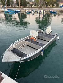 Bellissima barca da pesca in alluminio metei 4,50 con mercury 15 cv nuovo