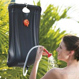 Disponibilità di kit completi doccia con serbatoio acqua, tubi di diversi metri, attacchi, nicchia porta doccia, serbatoi rigidi e in PVC, miscelatori, boiler.