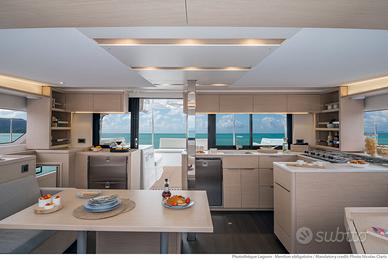 Versione: 4 cabine, 4 bagni Anno di costruzione: 2021 Proprietario: Unico proprietario Prezzo: €460.000 + IVA Bandiera: Italiana Perizia disponibile 03 2026 ________________________________________ Punti forti che rendono unico questo Lagoon 46: •Climatizzazione in tutte le cabine •Generatore 11 kW Onan 220V/50Hz con cocoon •Dissalatore (150 l/h) •Versione 4 cabine e 4 bagni •Due cabine marinaio nelle punte di prua •Finiture speciali linea Elegance •Equipaggiamento completo con dotazioni comfort (dettagli sotto) ________________________________________ Equipaggiamento Comfort •Cuscineria: colore tortora per pozzetto posteriore, pozzetto anteriore e prendisole flybridge con schienale sollevabile •Lazy bag: per albero standard e boma in alluminio •Attrezzatura per lo spinnaker (include winch elettrico a tribordo) •Randa in Dacron square top (upgrade rispetto alla standard) •2 winches elettrici per drizza randa e spi •4 luci subacquee e spotlights •Winch elettrico per avvolgimento carrello scotta randa •Winch elettrico per sistema sollevamento tender •Frigo pozzetto 12V (80L) •Produttore di ghiaccio: 220V (5 kg/ora) •Lavello in pozzetto •Tavolo pieghevole in teak con telo copertura (colore tortora) •Panca pozzetto scorrevole •Tela chiusura pozzetto con finestre (colore grafite) •Pavimenti pozzetto poppa e scalini poppa in teak •Flybridge: oBimini top in composito con teli di chiusura oTeli di chiusura trasparenti (colore tortora) oCopertura console guida (colore tortora) oComando salpa ancora con conta catena ________________________________________ Motori e autonomia •Motori: Yanmar 2 x 57 HP (Yanmar 4JH57) •Ore motore: 2.400 •Serbatoi carburante: 2 x 520 L (+2 serbatoi supplementari da 450 L ciascuno) ________________________________________ Sistemi energetici e idrici •Generatore Onan 11 kW 220V/50Hz •Inverter 12/220V – 2000VA •Dissalatore ZP 200 (160 l/h) •Capacità acqua dolce: 2 x 300 L ________________________________________