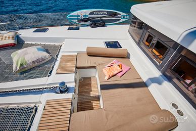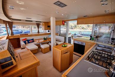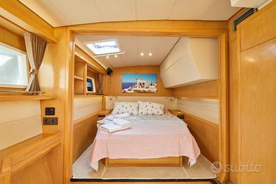Lagoon 52 F 4 cabine / 4 Bagni 2 Cabine Crew / 2 Bagni Crew Lunghezza: 15,84 m Larghezza: 8,74 m Pescaggio: 1,55 m Bandiera: Turca Prezzo: 450.000 € (VAT Non Pagata) Ubicazione: Marmaris (a terra in bacino di carenaggio) Motori Yanmar 2x 80 CV: Destra: 1513 ore, Sinistra: 1521 ore Generatore Onan: 10.500 ore Ristrutturato nel 2021. Desalinizzatori Sea Craft (350 L/h) installati nel 2024. Generatore Onan installato nel 2024. Tenda del flybridge rinnovata nel 2024. Nel 2024 è stato sostituito il verricello Lofrans da 1700 watt. Nel maggio 2025 è stata effettuata a terra la manutenzione del motore e del motore entrofuoribordo Yanmar. Nel maggio 2025 è stata applicata la vernice antivegetativa Sea Lux. Nel maggio 2025 sono stati sostituiti i cuscinetti del timone. È stata effettuata la manutenzione dei verricelli elettrici. Nel 2024 è stata sostituita la moquette del salone. Nel 2024 sono stati sostituiti i rubinetti della doccia del bagno. (Potrebbe essere necessario sostituirli nuovamente quest'anno) Nel 2025 è stato sostituito il piano di lavoro della cucina. La manutenzione del motore e del generatore viene effettuata annualmente dal centro assistenza Yanmar a Marmaris. Nel 2025 sono state sostituite due eliche. Nel settembre 2025 sono state sostituite le batterie da marina Mutlu ECO-class (4x180 amp). Il regolatore di carica del pannello solare MPTT (100 A) è stato sostituito nel settembre 2025. Dinghy Boat incluso