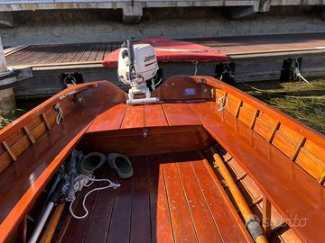 Vendo splendida barca in Legno dei cantieri Archetti di Montisola, lunghezza quasi 5 metri. Monta un fuoribordo jhonson 5 cavalli 4 tempi del 2008, da tagliandare. La barca è stata rimessata nel 2024 per un refitt e riverniciatura del legno. Sono comprese le dotazioni di bordo. Il telo è presente ma è da rifare perchè è cotto (molto usurato). Il prezzo è leggermente trattibile ed è possibile vedere su richiesta la barca, in zona lungolago a Sarnico. Disponibile a rispondere a qualsiasi richiesta/informazione.