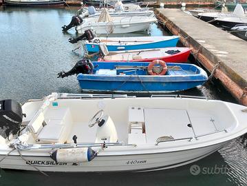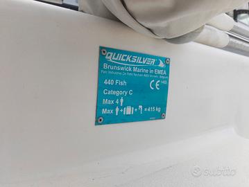 Vendo imbarcazione quicksilver fish 440 autosvuotante lunghezza -4,40 mt larghezza -1,78 MT anno 2011 immatricolata CE - Motore Mercury 20 a carburatore -tempi 4 -avviamento elettrico -trim elettrico - prendisole in VTR smontabile -vari vani portaoggetti prezzo comprensivo del tagliando e dell'antivegetativa. per info 3883675565