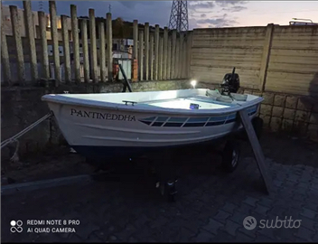 Vendo per passaggio a categoria superiore, stupenda lancia planante da MT 4 con motore fuoribordo da 9,9 CV Suzuki 4 tempi, ecoscandaglio Lowrance, impianto elettrico, pompa di sentina automatica, pompa per riciclo acqua vivo,presa per canna elettrica, porta canna in acciaio e carrello per alaggio. Prezzo trattabile.