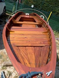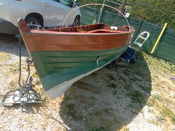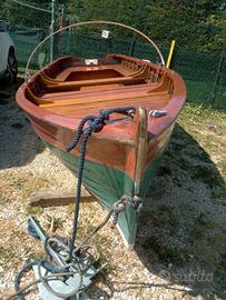 Vendo carinissima barca in legno cosiddetta lancia da pesca lunghezza 4,30 MT per una larghezza di 150 cm perfettamente in ordine con motore Mercury da 8 cavalli del 2023 perfettamente funzionante con libretto,con tendalino e telo di copertura fatto su misura l'anno scorso.Compresa nel prezzo ancora,scaletta e giubbino salvataggio e coppia di remi.