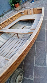 Lancia in legno chiodato ferma in cantina da 30 anni. Per amanti della nautica è un'ottima opportunità per rimettere a nuovo una bella lancia di quasi 80 anni. Lunga 3,5 metri (subito non mi permette di mettere le dimensioni con la virgola così nell'annuncio ho scritto 4 metri). La barca può essere solo ritirata e non spedita. Non è compreso il carrello di legno. Prezzo leggermente trattabile