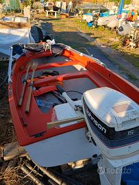 Lancia marplast m360 con motore Johnson 15 HP gambo corto funzionante perfettamente con regolare libretto ,tendalino 3 archi, remi,serbatoio benzina, scalmi nuovi, tenuta molto bene, con subentro posto barca 300? all' anno