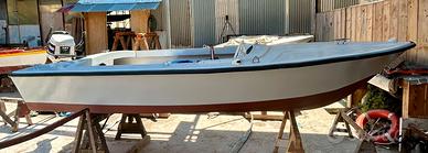 Vendo lancino con motore Johonson GT 737 25CV completo di libretto. Barca lunga 4,17m e larga 1,62m Barca restaurata e pitturata qualche mese fa. Scafo in ottime condizioni completa di: Timoneria Pulsantiera Panche Serbatoio da 30litri Salvagente anulare Pompa di sentina Batteria La barca non possiede l'impianto elettrico e la cuscineria Barca visibile a Murano, per maggiori dettagli contattatemi
