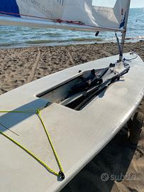 Vendo laser ben tenuto e completo di tutte le scotte, timone (stick nuovo), deriva armo standard con due vele e armo radial con una vela oltre a carrello alaggio e telo copri barca.